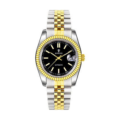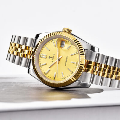 This two-tone automatic watch fuses timeless luxury and global versatility. Taking cues from mid-century dress sport styles, its elegant gold-silver band and sleek 36mm minimalist dial deliver understated sophistication beloved across Western and Middle Eastern markets. Crafted with durable 304L stainless steel and 5ATM water resistance, paired with neutral dial options, it balances EU/US preferences for low-key quality and Middle Eastern tastes for opulent durability, transcending trends for lasting appeal.