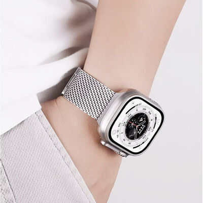 Surface Finish: High-contrast Dual-Finish; fine vertical satin brushing on the outer links with mirror-polished center rows for a luxury reflective edge.
