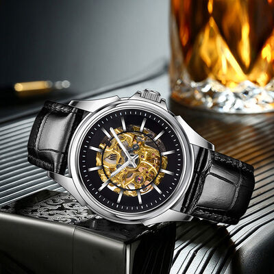 This watch draws from vintage mechanical watch craftsmanship (exposing the movement to highlight industrial artistry) and modern minimalism (clean stainless steel + butterfly buckle balance elegance with practicality), while the customizable logo nods to personalization trends.