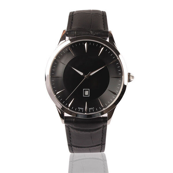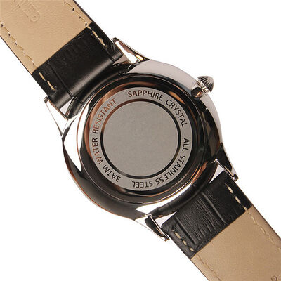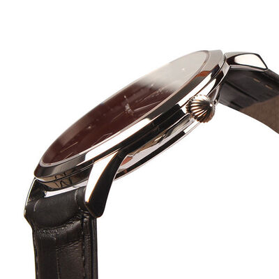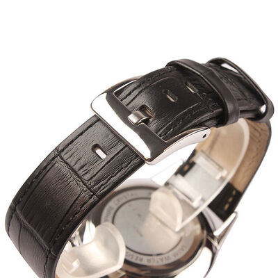 Material: Paired with a premium charcoal genuine leather strap featuring a smooth, matte top-grain finish.
