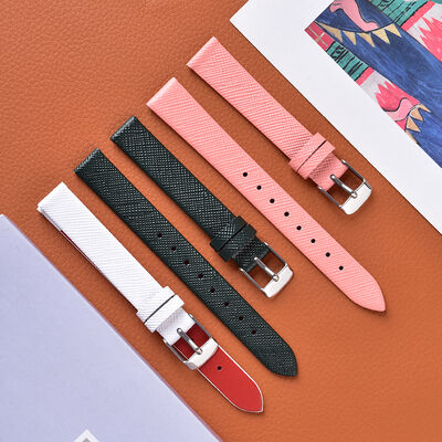 This 12mm narrow-grained leather strap is made from high-quality genuine leather, with a fine grain texture and hand-stitched craftsmanship that balances texture and durability. The straight interface accurately matches the corresponding specification of the watch, and the installation is stable without damaging the case; Paired with a polished stainless steel clasp, it is wear-resistant and rust-resistant and easy to wear. The low MOQ configuration of 300pcs / color is perfectly suitable for small-sized watch categories such as light luxury women's watches and fashion quartz watches, helping end products create exquisite and differentiated selling points and enhance market competitiveness.