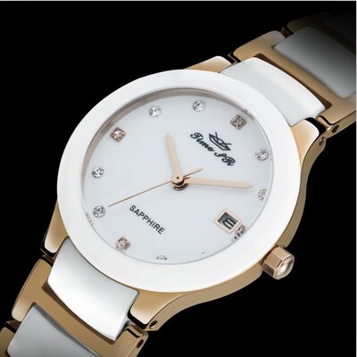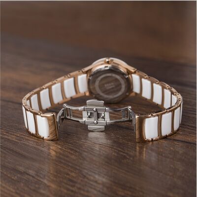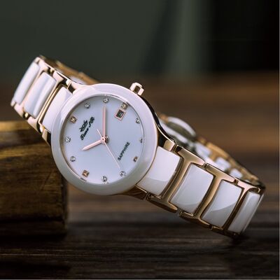 Details about product | 1 .Type : 27 mm quartz watch 2 . Condition :Unworn 3 . Material of Case : Ceramic + Stainless Steel Band : Ceramic + Stainless Steel 4 . Movement : MIYOTA VJ32 5 . Face mirror :Sapphire Crystal 6 . Face dial :Cooper 7 . Case-back :Stainless steel 8 . Water resistant :5ATM 9 . Dial marks : Stone 10 . Crown :push/pull 11 . Case diameter :27mm 12. Thickness: 8.5mm 13. Band Length: 130mm |