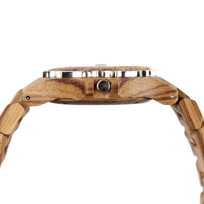 This wooden watch is made of natural zebra wood, which has a unique texture and a warm texture, and the lightweight design is comfortable to wear without feeling oppressive, and each piece of wood has a unique natural grain that is highly recognizable. Equipped with the original Japanese Miyota 2025 quartz movement, it runs accurately and stably, with low power consumption and strong durability; The case back is made of stainless steel to improve overall durability; The coated mineral glass mirror is transparent and clear, scratch-resistant and wear-resistant, and 3ATM waterproof is suitable for daily hand washing, rain and other scenarios. The 47.5×38mm diameter is paired with Riveted Index design, which is clear when reading and has a strong sense of visual hierarchy; The natural wood grain dial + wooden strap has both natural retro and light luxury textures, which is perfectly suitable for men's business, daily commuting, gift giving and other categories, helping the terminal to create a differentiated selling point of "natural wood + original movement" and enhance market competitiveness.