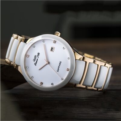1 .Type :38 mm quartz watch 2 . Condition :Unworn 3 . Material of Case : Ceramic Material of Band : Ceramic + Stainless Steel
