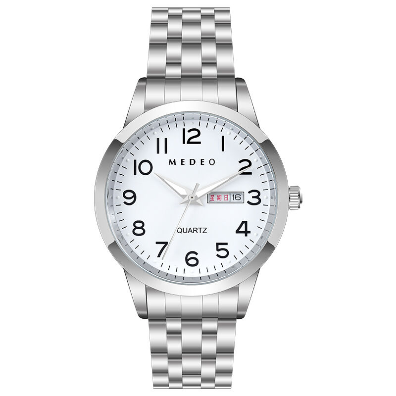 Men's exclusive design, 40mm diameter adapts to most wrist circumferences, large numeric hour markers + dual calendar display practical design, not only suitable for business meetings, workplace commuting formal scenes, but also to control the relaxed atmosphere of daily leisure and family travel; The durable attributes of 30-meter waterproof + stainless steel strip cover business people, middle-aged and elderly users, daily commuters and other diverse customer groups, broadening terminal sales scenarios for B2B buyers.