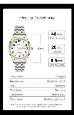 The 40mm diameter is paired with a large numeral index dial, which is clear and intuitive when reading, especially suitable for middle-aged and elderly people or users who pursue convenient reading; Dual Calendar Display (Day + Date) Practical and convenient function, no need to check the calendar additionally; The gold bezel (silver + gold) design is simple and atmospheric and full of business texture, which is perfectly suitable for men's business, daily commuting, family travel and other categories, helping the terminal to create a differentiated selling point of "cost-effective + practical functions" and enhance market competitiveness.