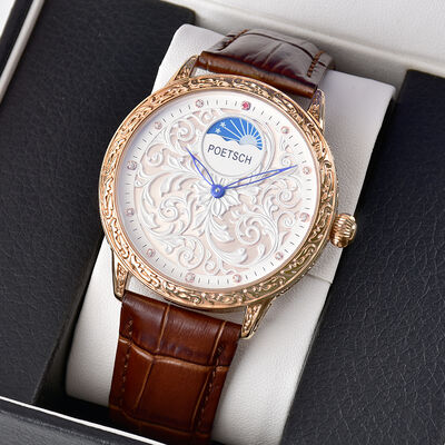 Inspired by the core inspiration of retro European jewelry-grade engraving technology: the exquisite texture of court relief is integrated into the watch dial and case, and the delicate carving of zinc alloy is used to restore the retro luxury temperament; At the same time, it adapts to modern daily needs - equipped with a precision quartz movement, 30-meter water resistance, and a leather strap instead of heavy jewelry materials, balancing "retro luxury visual texture" with "comfortable and practical for daily wear", creating an elegant watch that combines "ceremonial sense" and "scene adaptability".