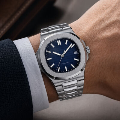 Deep Sea Horizontal Dial: The steady midnight blue dial is complemented by horizontal embossed textures, presenting a profound depth reminiscent of deep-sea waves under shifting light.